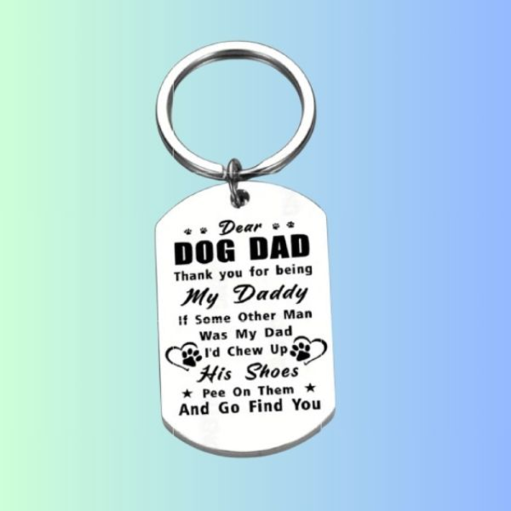 De sleutelhanger heeft een boodschap van een hond aan zijn baasje.