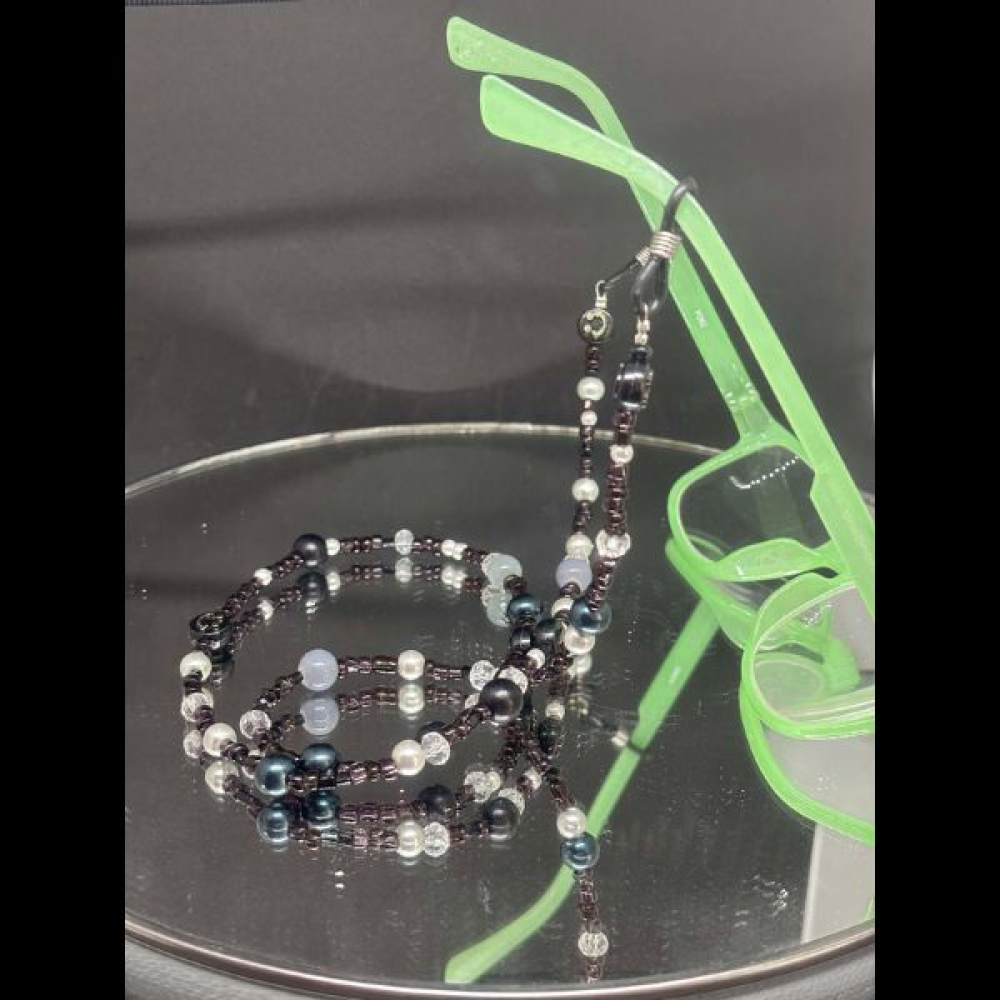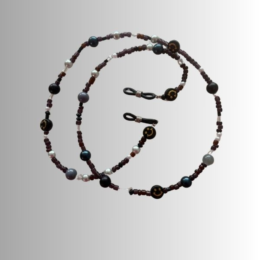 De brillenkoordjes zijn uniek omdat ze allen handgemaakt zijn. De kraaltjes zijn geregen op dun staaldraad en daarom bijna onbreekbaar.