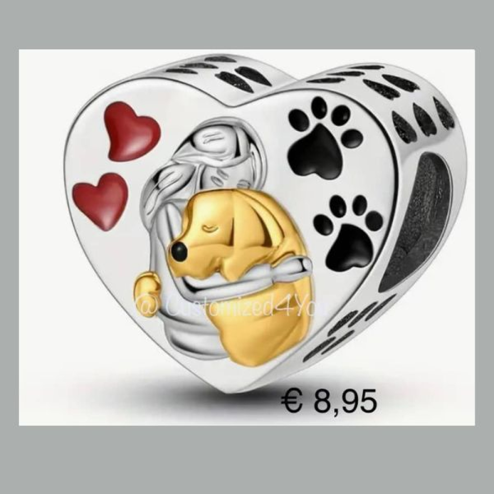 Zilveren kraal meisje met hond.
