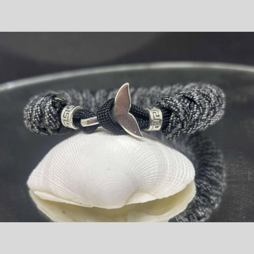 Paracord, silver/black handmade heren armband met RVS walvisstaart als sluiting.